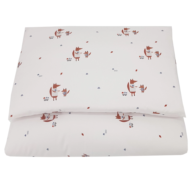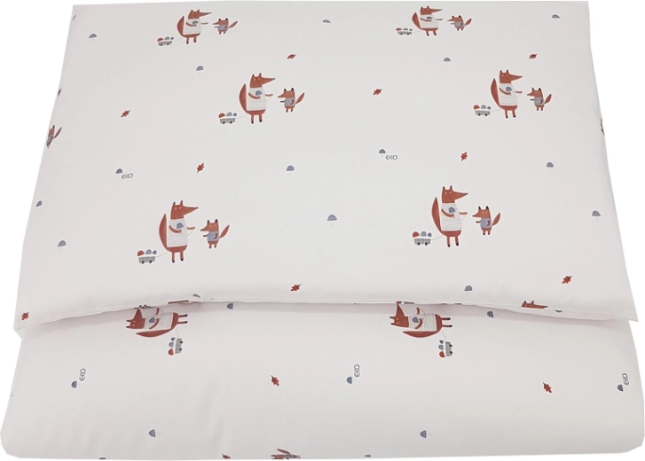 Deliziosa biancheria da letto per bambini con motivo di volpi in 100% cotone per un sonno morbido, traspirante e confortevole. Il set comprende una federa per piumino 90 × 120 cm e una federa per cuscino 40 × 60 cm, ideale per il lettino.