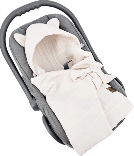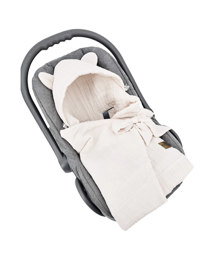 Il cappuccio con adorabili orecchiette protegge dal freddo, mentre la struttura avvolgente con fiocco evita lo scivolamento come può accadere con una coperta comune. L’elegante tonalità Beige si abbina facilmente al corredo e agli interni dell’auto; la dimensione 110 × 100 cm offre spazio sufficiente per avvolgere anche i bebè più grandicelli.