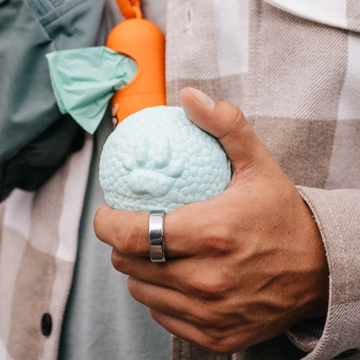 La pallina galleggia ed è ben visibile in superficie, perciò è ideale per il riporto in acqua. Resiste anche a un trattamento più ruvido, a temperature molto basse e a un uso prolungato. La superficie con texture aiuta a pulire meccanicamente i denti durante il gioco. A fine vita, il materiale è 100% riciclabile, una scelta che piacerà anche agli amanti della sostenibilità.