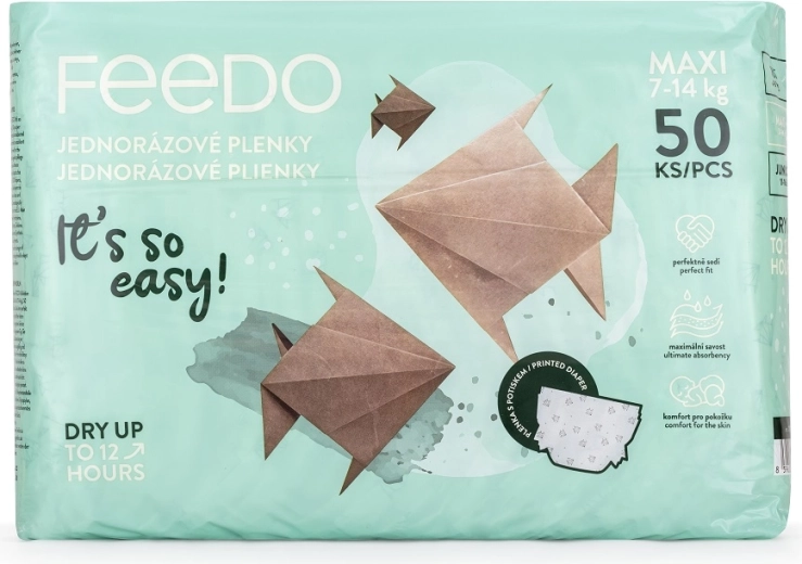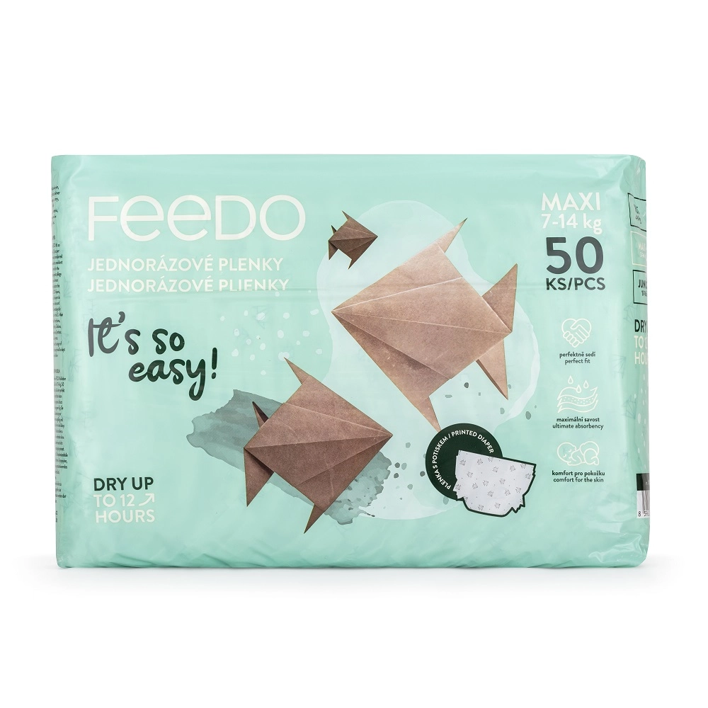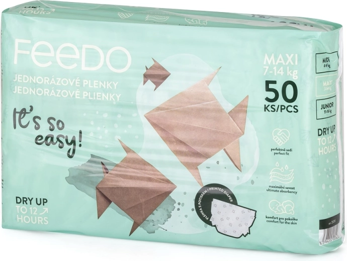 I pannolini usa e getta FEEDO Maxi combinano elevata capacità assorbente, traspirabilità e una formula sicura senza profumi e lattice. Il nucleo a tre strati allontana rapidamente l’umidità mantenendo la pelle asciutta, mentre i polsini elastici attorno alle gambine e la vita flessibile garantiscono una vestibilità sicura ma confortevole senza limitare i movimenti.