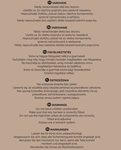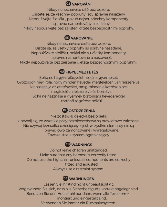 La seduta in PU idrorepellente si pulisce con un panno umido. Il vassoio rimovibile può essere lavato in lavastoviglie a una temperatura fino a 40 °C.
