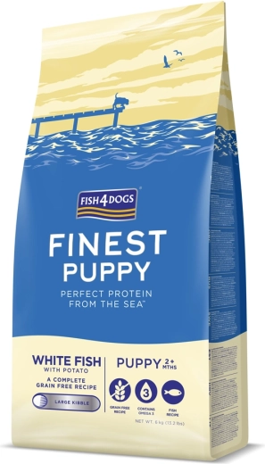 FISH4DOGS Finest per cuccioli con pesce bianco e patate è un alimento gustoso e nutriente creato appositamente per le esigenze dei cani in crescita. Il pesce bianco dell’Atlantico settentrionale è una fonte naturale di acidi grassi omega-3, che favoriscono il corretto sviluppo del sistema nervoso, delle funzioni cognitive e il buon stato di vista e cuore. La ricetta senza cereali facilita inoltre una digestione delicata ed è una scelta eccellente per cuccioli con apparato digerente sensibile.