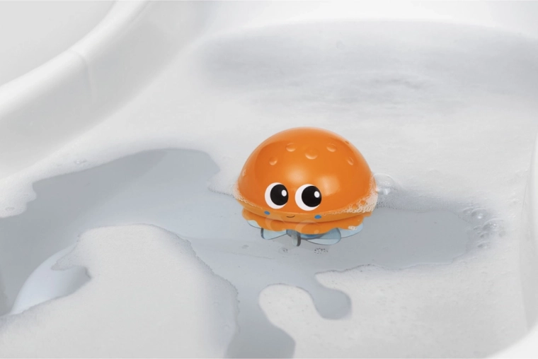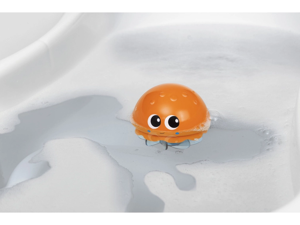 Scopri il divertimento in acqua con la medusa che trasforma ogni bagnetto in un momento di gioia. Grazie alla forma intuitiva si afferra bene e la semplice funzione meccanica di rotazione dei tentacoli crea in acqua un coinvolgente ballo. Il gioco stimola la motricità fine, la coordinazione mano-occhio e la comprensione di causa ed effetto.