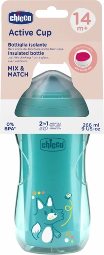 Chicco Active è un resistente bicchiere termico progettato per bambini dai 14 mesi, che imparano a bere in autonomia. Il beccuccio sottile e rigido con bordo solido aiuta la transizione al bere come da bicchiere, mentre la valvola affidabile limita le perdite durante il sorso e in movimento. L’ergonomica conformazione si adatta bene anche alle manine più piccole.