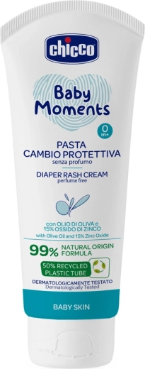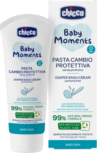 La delicata crema per dermatite da pannolino CHICCO con 15% di ossido di zinco crea una barriera protettiva traspirante tra il pannolino e la pelle sensibile del bambino. Contiene il 99% di ingredienti di origine naturale, è senza profumo ed è adatta dalla nascita (0m+). Lenisce, protegge e aiuta a prevenire arrossamenti e irritazioni.