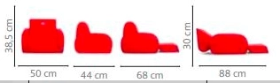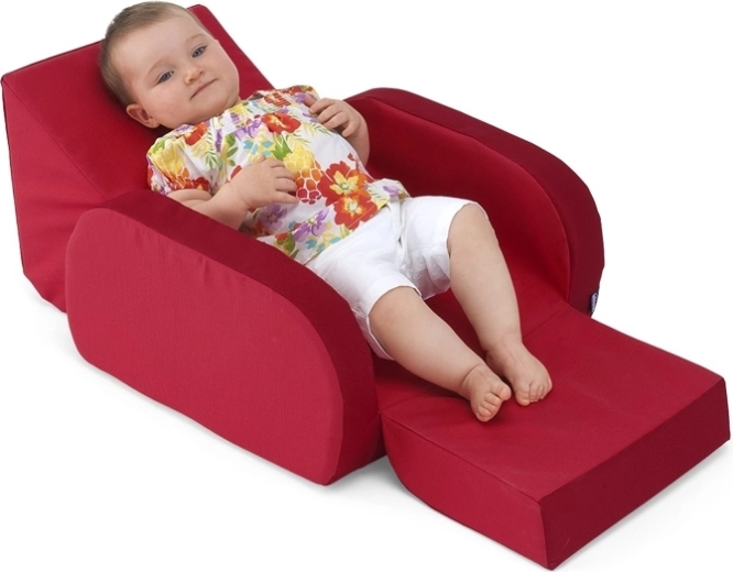 Lo schienale e il poggiapiedi ribaltabili permettono di trasformare rapidamente la poltroncina in una comoda chaise‑longue per il relax, la lettura e la visione dei cartoni.