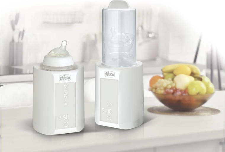 Dispositivo multifunzione 2 in 1 di CHICCO che in un'unica unità compatta scalda latte materno e artificiale e le pappe e al contempo sterilizza rapidamente biberon e piccoli accessori. Offre programmi precisi, mantenimento della temperatura fino a 60 minuti, avvio ritardato, spegnimento automatico e funzione di riscaldamento delicato del latte materno per preservare i nutrienti. La soluzione ideale che fa risparmiare tempo e spazio in cucina.