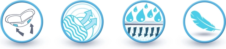 - Ultra assorbenza: assorbimento rapido dell’umidità e sensazione di asciutto per tutto il giorno.