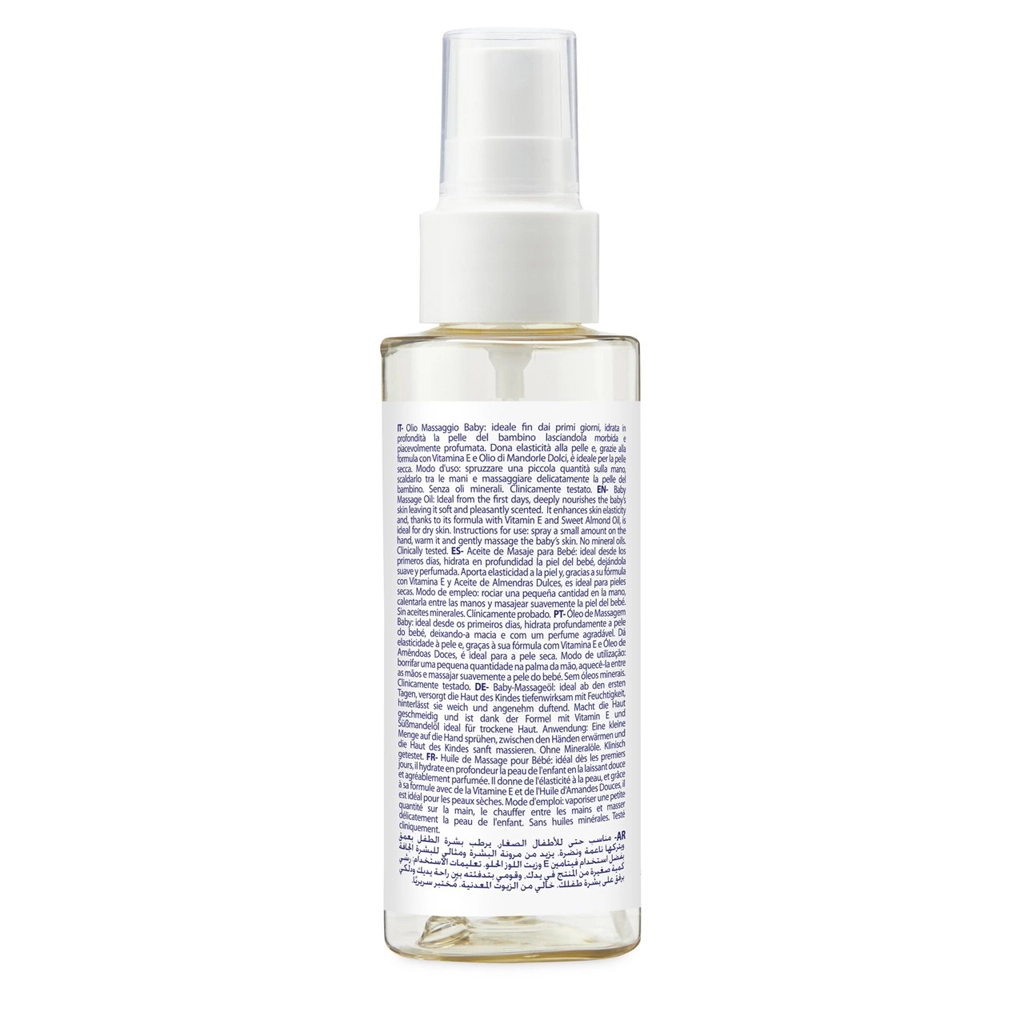 Il massaggio è un momento speciale di vicinanza tra genitore e bambino. L’olio da massaggio CHICCO Natural Sensation rispetta il pH naturale della pelle del bambino, è approvato da pediatri e dermatologi ed è adatto fin dalla nascita. Grazie alla combinazione di oli naturali di mandorla, crusca di riso, germe di grano e avena, offre alla pelle del neonato nutrimento, protezione e una prolungata morbidezza senza effetto untuoso.