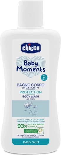 - Detergente corpo (200 ml, 93% ingredienti naturali) – deterge con delicatezza e lascia la pelle morbida e piacevolmente profumata. Rispetta l’equilibrio idrolipidico della pelle delicata del bambino.