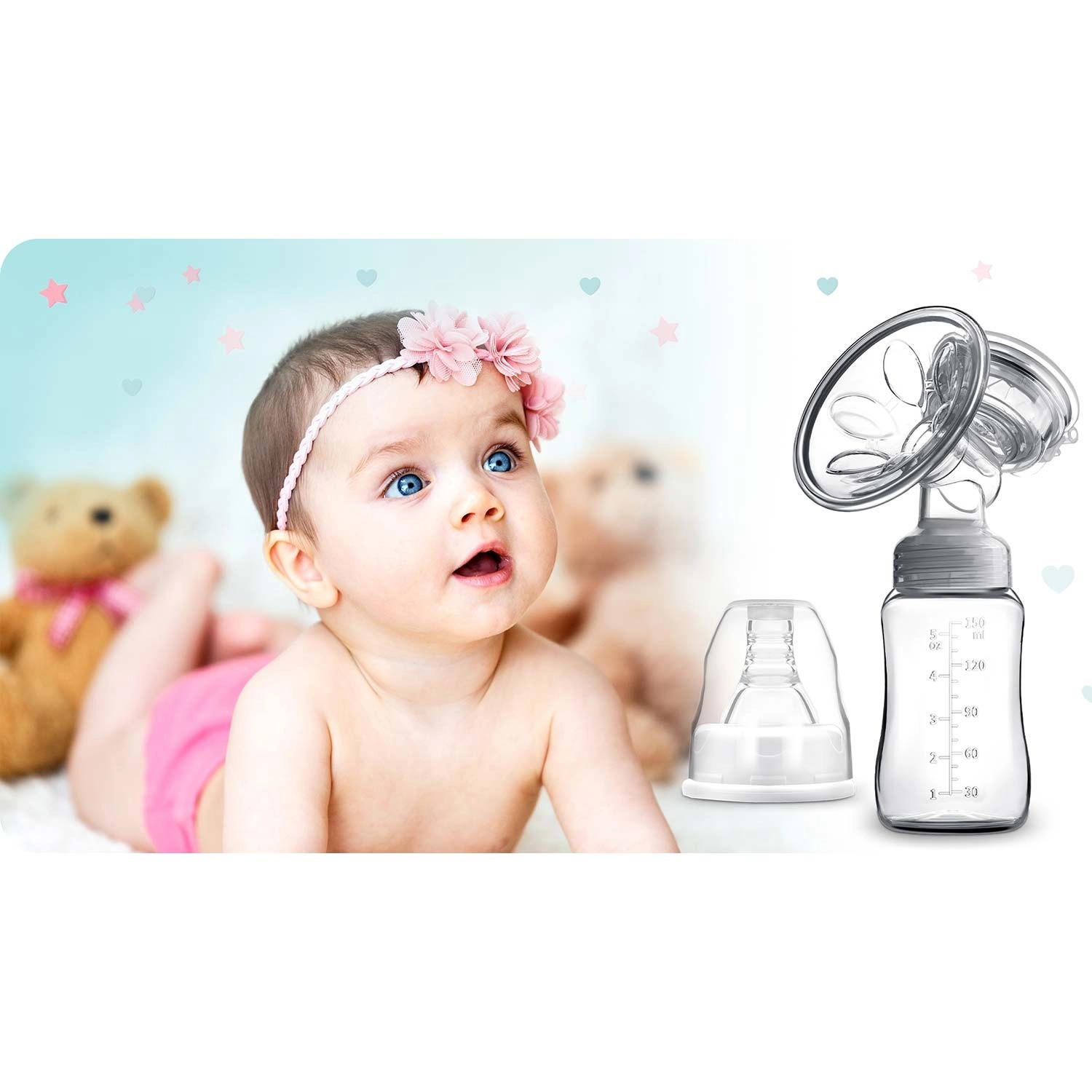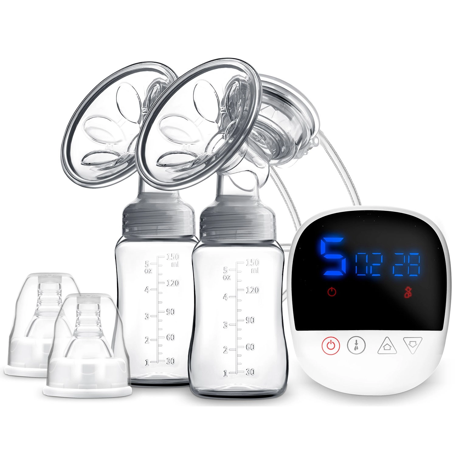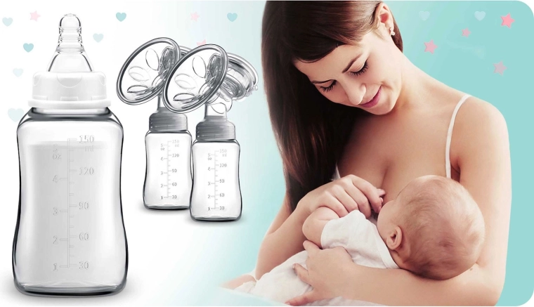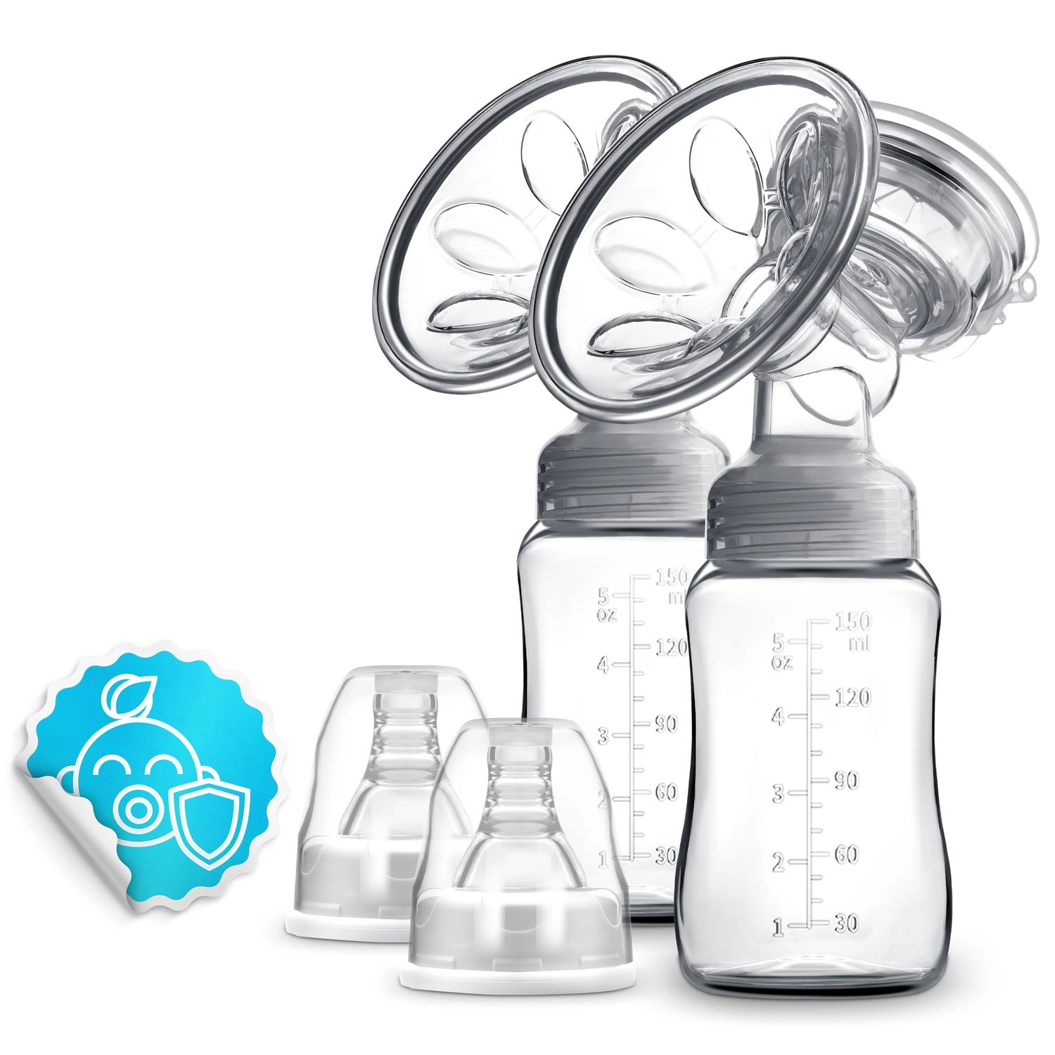 - Accessori pratici inclusi: 2 biberon da 150 ml, 2 tettarelle, 2 sacche per il latte