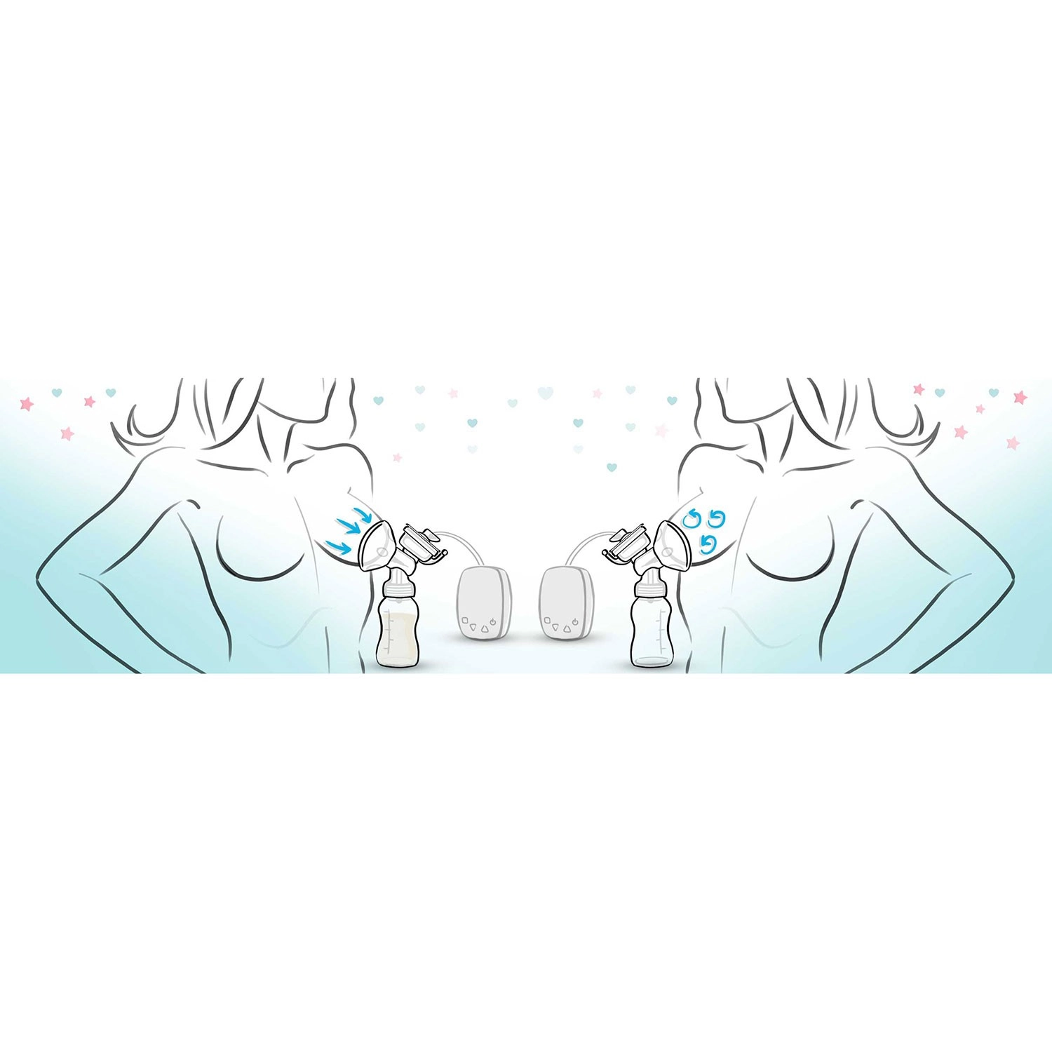 Modalità I per una rapida stimolazione del flusso di latte e modalità II per un’estrazione profonda ed efficace. Delicata, confortevole e con possibilità di impostare con precisione la forza di aspirazione.
