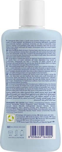 Delicato gel doccia e shampoo 2in1 per neonati fin dalla nascita che deterge con delicatezza corpo e capelli in un solo gesto. Contiene aloe vera per idratare e lenire e camomilla per ammorbidire. Si risciacqua facilmente, non secca la pelle sensibile, la lascia morbida e profumata e i capelli facili da pettinare. Sviluppato e testato da pediatri e dermatologi, prodotto in Italia.