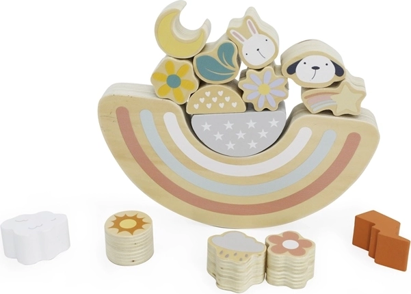Contenuto della confezione: figurine in legno di cane e gatto e base di equilibrio, tutto pronto per giocare subito.