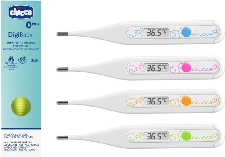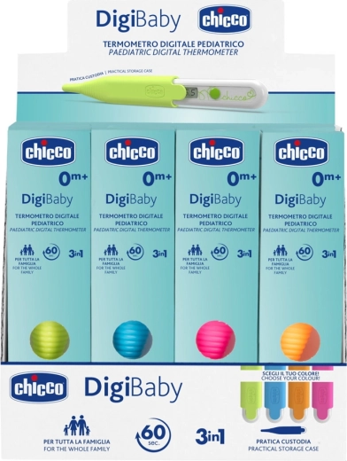 Il termometro digitale Chicco Digi Baby verde è progettato per una misurazione delicata e affidabile della temperatura corporea dei più piccoli. La punta appositamente sagomata aumenta il comfort durante la misurazione e l’uso universale (ascellare, rettale, orale) garantisce flessibilità in ogni situazione. Grazie al segnale acustico al termine della misurazione e all’allarme febbre, avrai sempre un chiaro controllo dei risultati.