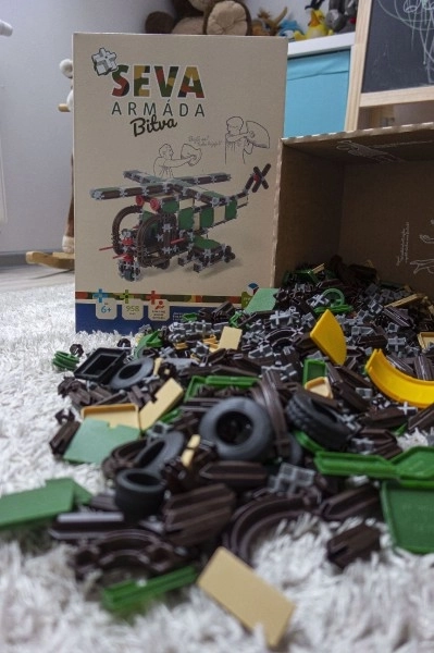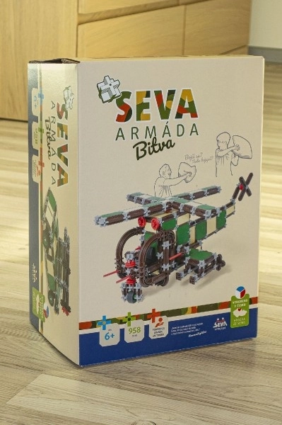 Scopri il set di costruzione universale SEVA per piccoli soldati e ingegneri! Il kit con 958 pezzi permette di costruire un veicolo militare, un trasporto blindato, un elicottero e modelli originali a tua fantasia. Tutto è compatibile con gli altri set SEVA, prodotto nella Repubblica Ceca e senza ftalati secondo la norma EN71.