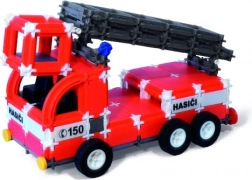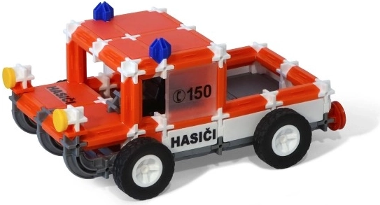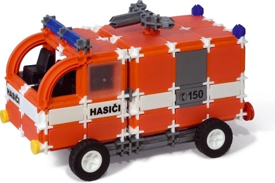 Costruisci un automezzo dei vigili del fuoco con piattaforma elevabile, una grande autobotte con possibilità di rotazione e un veicolo di comando (tecnico). Non mancano gli adesivi tematici “HASIČI, RESCUE, FIRE” e il numero di emergenza 150, che aiutano i bambini a imparare importanti regole di sicurezza.