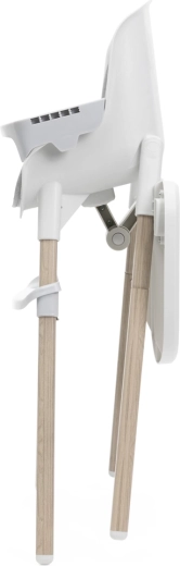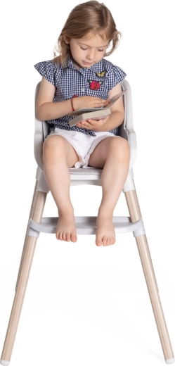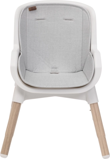 La manutenzione è questione di un attimo: le superfici in plastica si puliscono con un semplice panno, l’inserto in tessuto è removibile e lavabile e il vassoio rimovibile si sciacqua facilmente sotto l’acqua. Con un peso di soli 4,5 kg, la sedia si sposta agevolmente tra le stanze. Quando non in uso, si richiude in modo compatto e offre un pratico spazio di stivaggio per gli accessori sulle gambe posteriori.