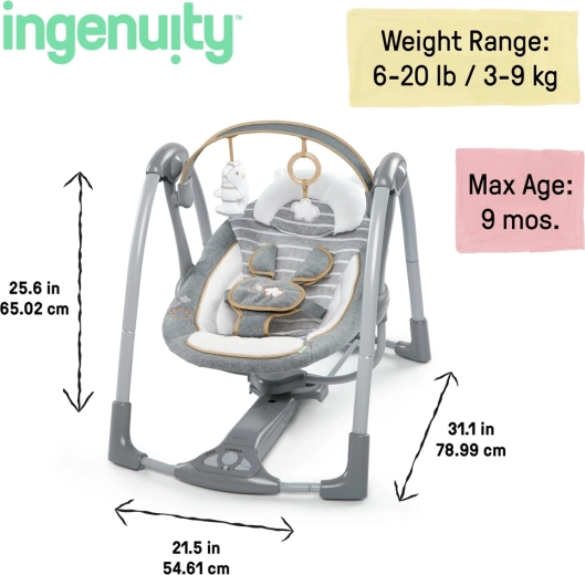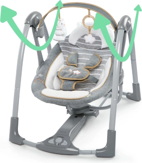 L’altalena si richiude facilmente in formato compatto per il trasporto o lo stoccaggio e, grazie alla struttura stabile, è comoda anche in viaggio. Basta inserire 4 batterie di tipo D e godersi momenti di tranquillità a casa e fuori.