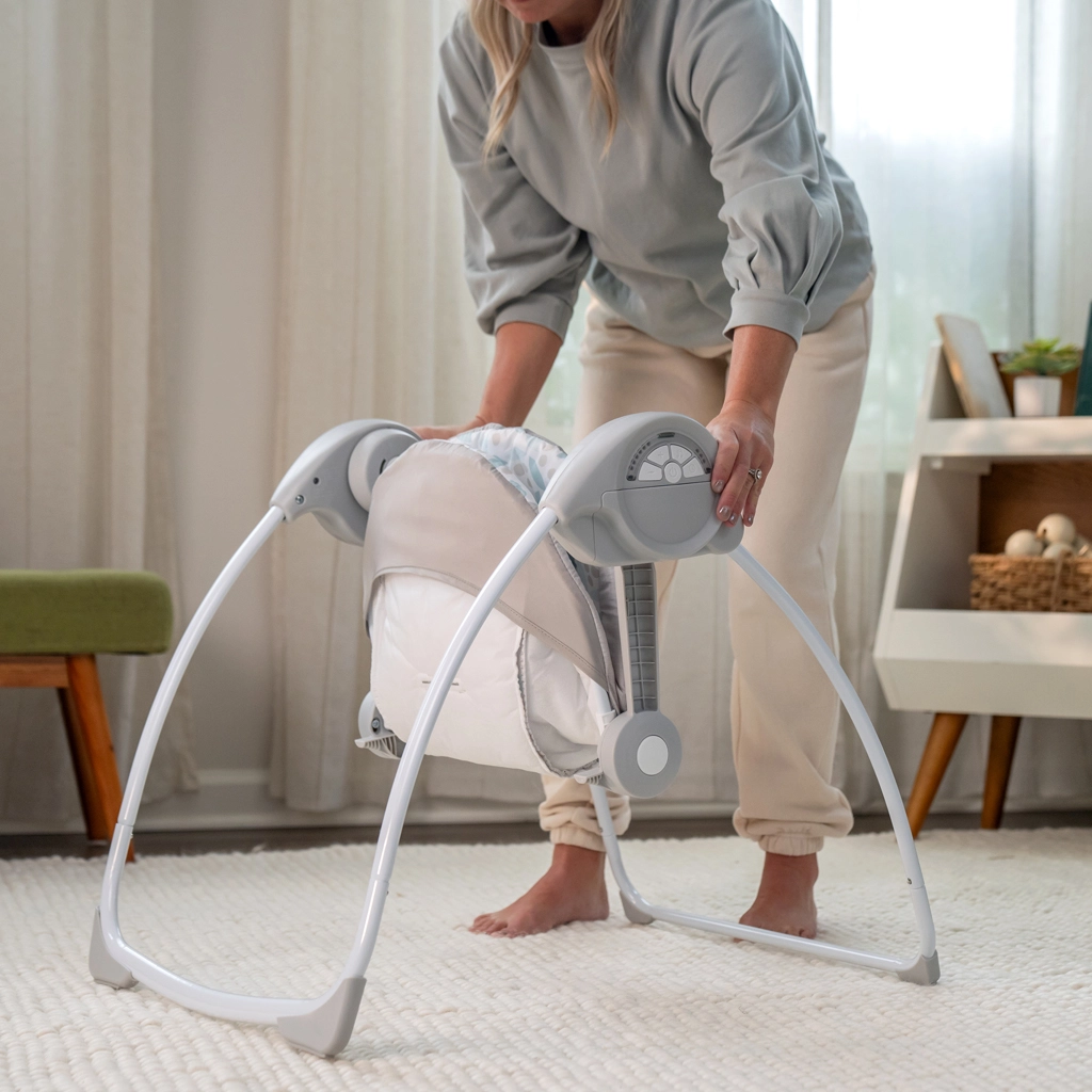 Un’altalena pratica e portatile per neonati fino a 9 kg che offre un dolce dondolio calmante, musica piacevole e giochi divertenti per la stimolazione visiva e uditiva. La tecnologia WhisperQuiet™ garantisce un funzionamento silenzioso, così nulla disturba il sonno o il momento di relax. Grazie al design pieghevole compatto puoi portarla ovunque – dai nonni, in campagna o in un piccolo appartamento.