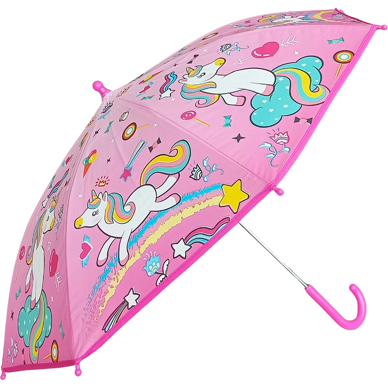 Un colorato ombrello per bambini con motivo di unicorni trasforma le giornate di pioggia in divertimento. È leggero, facile da maneggiare e progettato per le piccole mani con apertura e chiusura sicure.