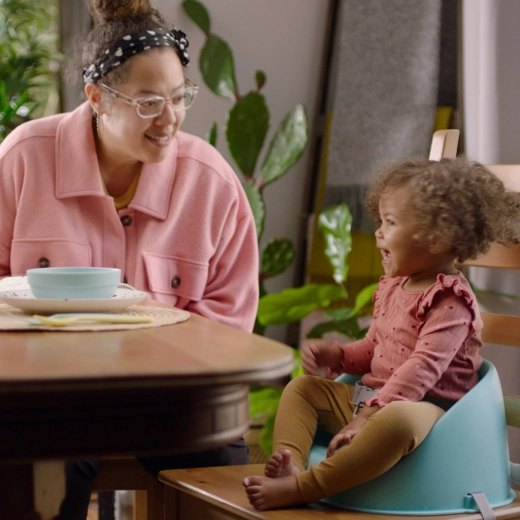 La cintura di sicurezza regolabile a 3 punti mantiene il bambino in una posizione comoda e stabile durante i pasti e il gioco al tavolo.