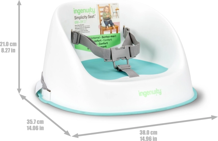Il rialzo Ingenuity Simplicity Seat aiuta i bambini a passare senza problemi dal seggiolone al tavolo di famiglia. Il design leggero e compatto, senza necessità di montaggio, si estrae, si fissa e si usa subito. Le superfici di contatto morbide garantiscono comfort, mentre la base resistente e pulibile con un panno e le cinghie lavabili gestiscono facilmente il disordine quotidiano.