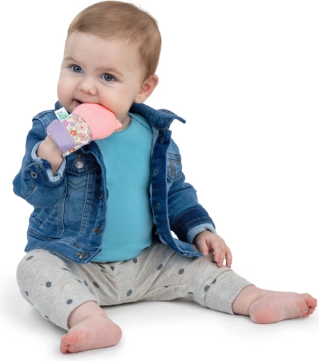 Dona sollievo alle gengive doloranti del tuo bimbo con il pratico guantino da mordicchiare INGenuity. La dolce civetta Nally e il silicone senza BPA offrono una masticazione sicura, mentre la superficie testurizzata massaggia delicatamente le gengive. Il cinturino regolabile mantiene il guantino ben fermo in posizione ed è ideale per i bambini che non sanno ancora afferrare un massaggiagengive da soli.