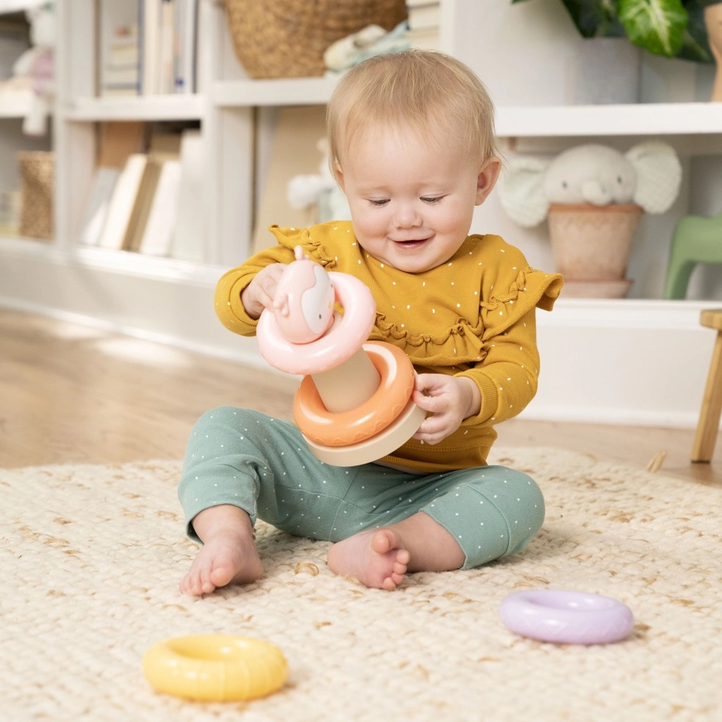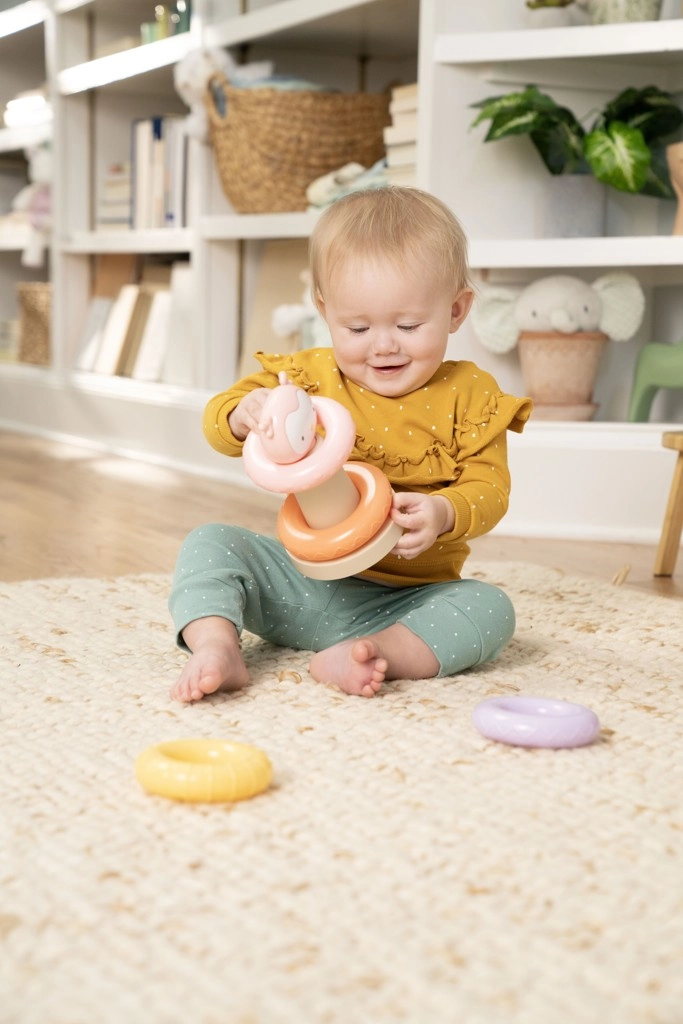 Impilare e rimuovere gli anelli allena la precisione dei movimenti, rafforza la coordinazione e favorisce lo sviluppo naturale delle abilità già dai 6 mesi.