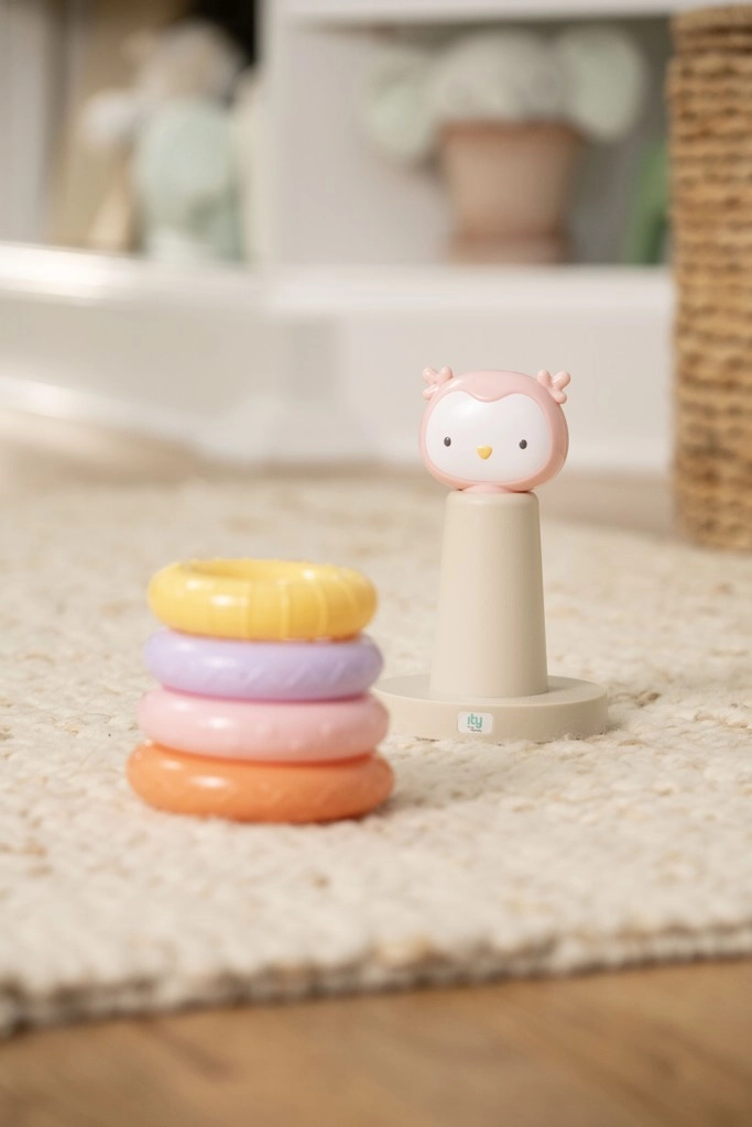 La piramide impilabile ity by INGENUITY con la gufetta Nally è il giocattolo educativo ideale per i primi apprendimenti, offrendo una scoperta sicura di colori, forme e texture. Grazie agli anelli alleggeriti e testurizzati senza BPA, il bebè può afferrarli e impilarli con facilità, allenando in modo naturale la presa e la coordinazione.