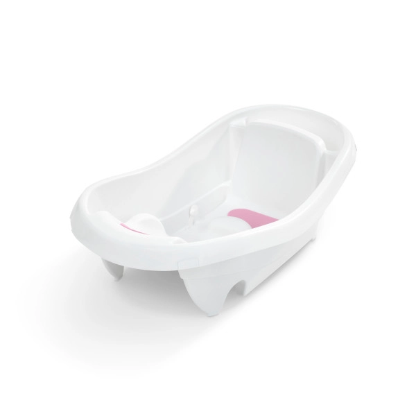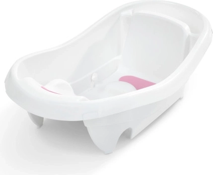 Le sponde sagomate, lo schienale imbottito e gli inserti antiscivolo mantengono il bimbo in posizione stabile. Il bagnetto è confortevole e senza scivolamenti inutili.