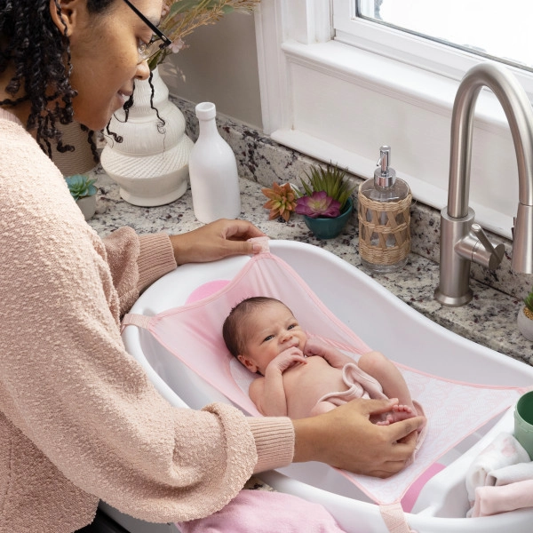 Il pratico vassoio per i genitori mantiene tutto il necessario a portata di mano, mentre i materiali facili da pulire e lo svuotamento rapido fanno risparmiare tempo dopo il bagnetto. Il design compatto consente l’uso sia nel lavello sia nella vasca, e la sicurezza è comprovata da test indipendenti.
