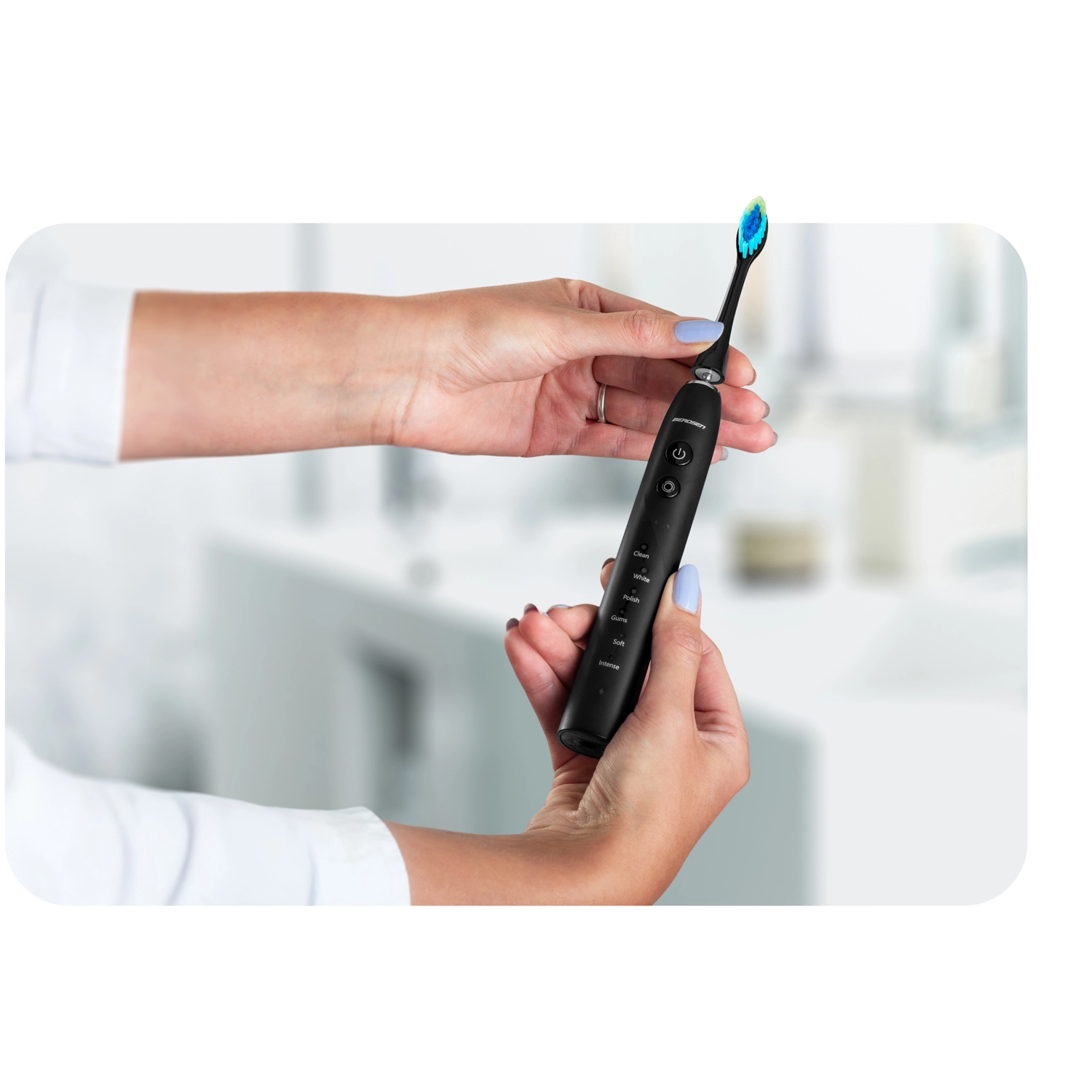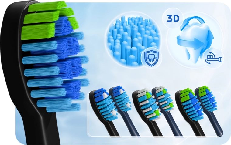 • Delicato sullo smalto, efficace contro la placca – rimozione delle impurità fino a più volte migliore rispetto agli spazzolini manuali.