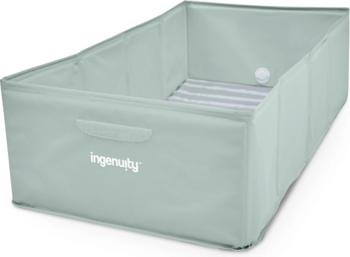La vaschetta INGENUITY TuckAway è la scelta ideale per il bagnetto in spazi ridotti e in viaggio. Grazie ai pannelli pieghevoli create in un attimo un angolo comodo e sicuro per il bagnetto e, dopo l’uso, la ripiegate quasi piatta. La tacca del livello massimo aiuta a controllare facilmente un riempimento sicuro, mentre la valvola di scarico consente un rapido svuotamento senza spostamenti inutili.