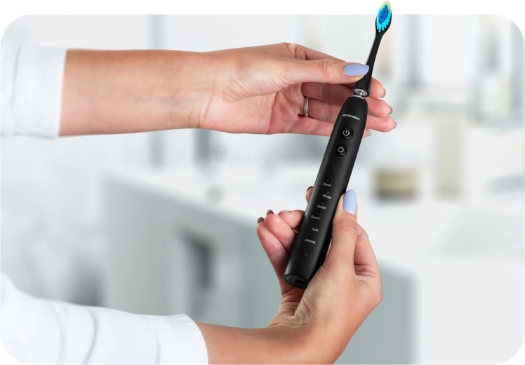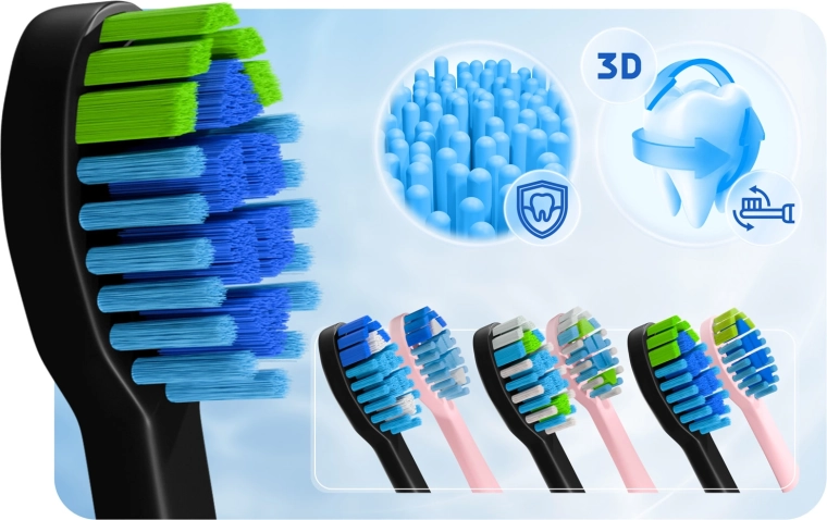BERDSEN Galaxy Duo è la soluzione completa per coppie e famiglie che desiderano un sorriso bianco e sano senza sforzo. La tecnologia sonica genera fino a 40.000 vibrazioni al minuto, delicata sullo smalto ed efficace contro la placca. La testina ergonomica con setole morbide pulisce con precisione anche le zone difficilmente raggiungibili e il lato posteriore della testina aiuta con l'igiene della lingua per un alito fresco.