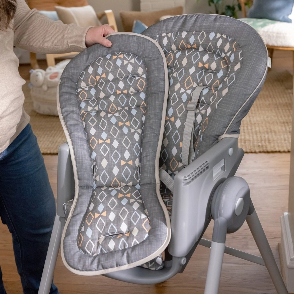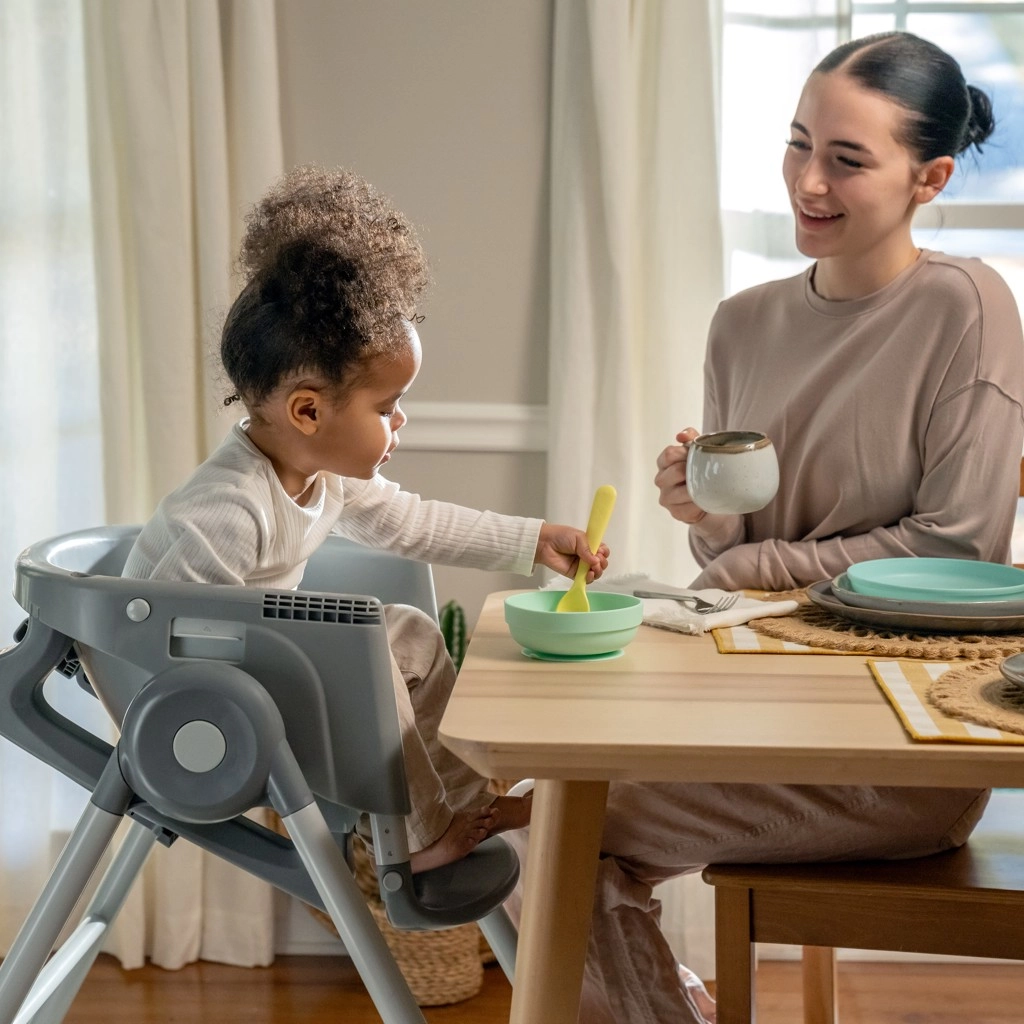 Vassoio con inserto per lavastoviglie, superfici lavabili e rivestimenti lavabili in lavatrice. La cintura a 5 o 3 punti mantiene il bambino al sicuro in ogni modalità.