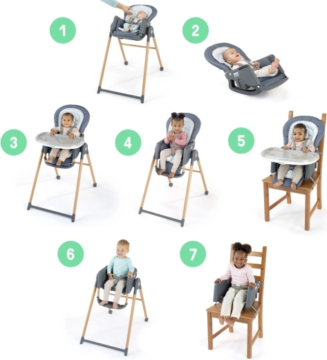 Scopri il seggiolone per bambini versatile che cresce con il tuo bimbo dalla nascita fino a 5 anni. Il modello 7 in 1 offre 7 modalità d’uso dal dondolino per neonati al rialzo, seduta ergonomica 90/90/90 per una postura corretta, poggiapiedi regolabile, cintura a 5/3 punti e facile manutenzione grazie ai rivestimenti lavabili e al vassoio lavabile in lavastoviglie.