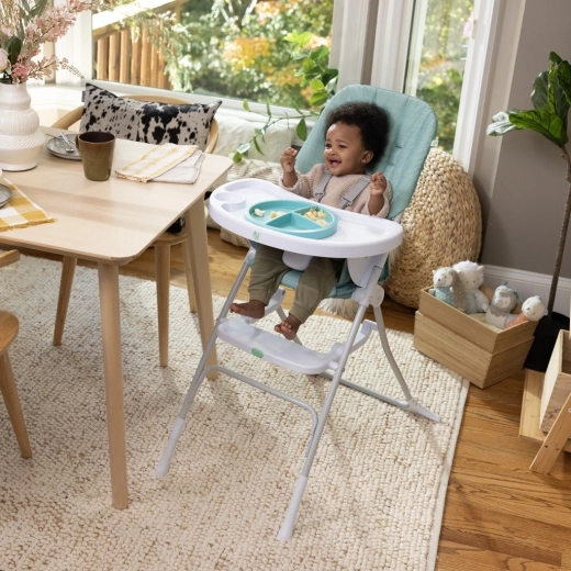 INGENUITY Sun Valley è una scelta intelligente per l’alimentazione quotidiana e i primi tentativi di autonomia a tavola. Il seggiolone si ripiega in pochi istanti in modalità piatta e, una volta chiuso, sta in piedi da solo, risultando facile da riporre e trasportare. L’imbottitura morbida è lavabile in lavatrice e l’ampio vassoio con regolazione a 3 livelli si aggancia allo schienale per risparmiare spazio.