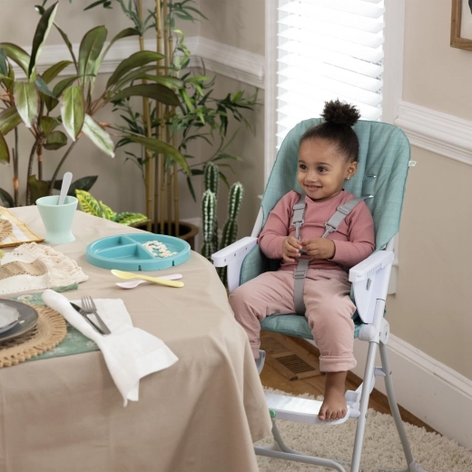 Il seggiolone INGENUITY Sun Valley, compatto e leggero, fa risparmiare spazio offrendo al tempo stesso al bambino un pasto comodo e sicuro. Grazie alla chiusura piatta sta in piedi da solo, dispone di rivestimento removibile e lavabile, cintura di sicurezza a 5 punti e dell’esclusivo piatto a tre scomparti Twist & Dine con blocco di fissaggio e possibilità di utilizzo nel microonde. Il vassoio regolabile su 3 posizioni e la struttura metallica stabile garantiscono comfort dai 6 mesi fino a 15 kg.