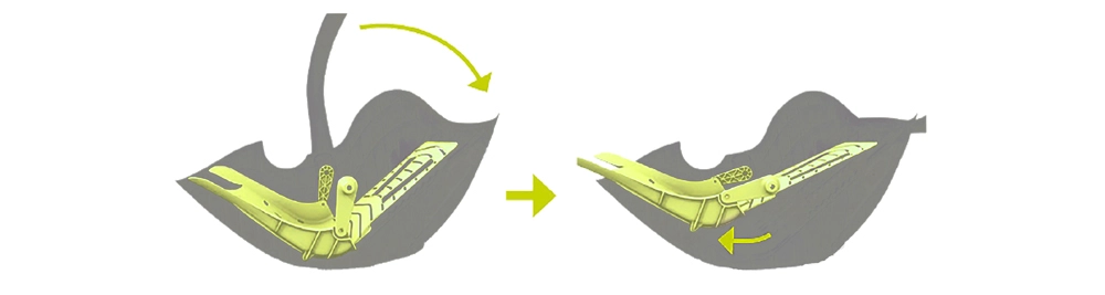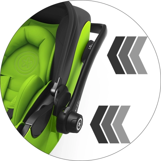 Il sistema di reclinazione intelligente, attivato dalla maniglia, permette al bambino di restare disteso in posizione orizzontale anche durante il viaggio in auto (se utilizzato con la base ISOFIX). Supporta la respirazione e il corretto allineamento della colonna vertebrale fin dalla nascita.