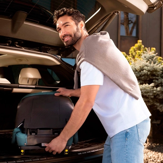 UNITY 2 i-Size si ripiega facilmente in dimensioni compatte. Ideale per i genitori che spostano spesso il seggiolino o devono risparmiare spazio nel bagagliaio.