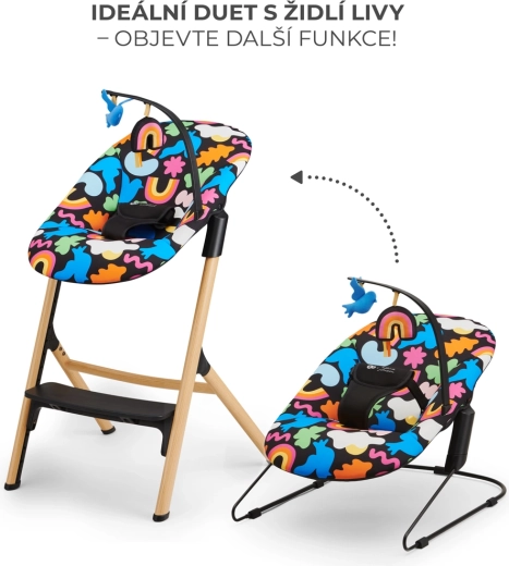 Comfort intelligente per genitori e bambino. La struttura leggera si sposta facilmente in casa, il rivestimento si rimuove e si lava a mano senza sforzo. La giostrina con giochi incentiva ad alzare le manine e ad allenare la presa, sostenendo lo sviluppo motorio. In un attimo colleghi la sdraietta alle sedie LIVY o IGEE e ottieni una sdraietta alta: il bambino resta sempre a vista.