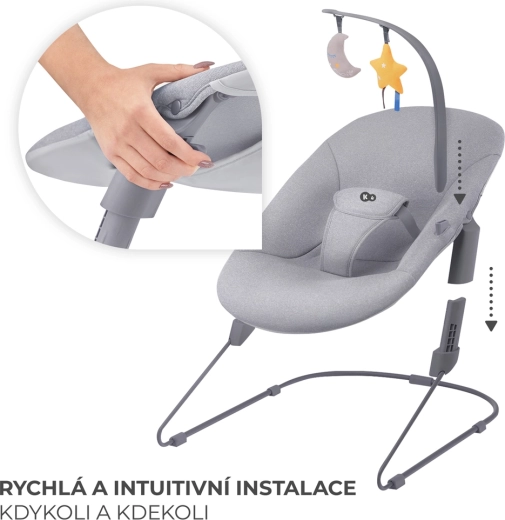 La sdraietta minimalista Kinderkraft Calmee Happy Shapes per neonati dalla nascita fino a 9 kg offre dondolio naturale, seduta morbida ed ergonomica e cinture di sicurezza a 3 punti. Grazie alla struttura leggera e stabile, al rivestimento facilmente rimovibile e alla giostrina con giochi, calma e intrattiene il bambino mentre tu hai le mani libere. Si collega alle sedie LIVY o IGEE per creare una sdraietta alta senza attrezzi.