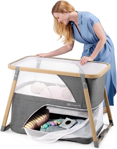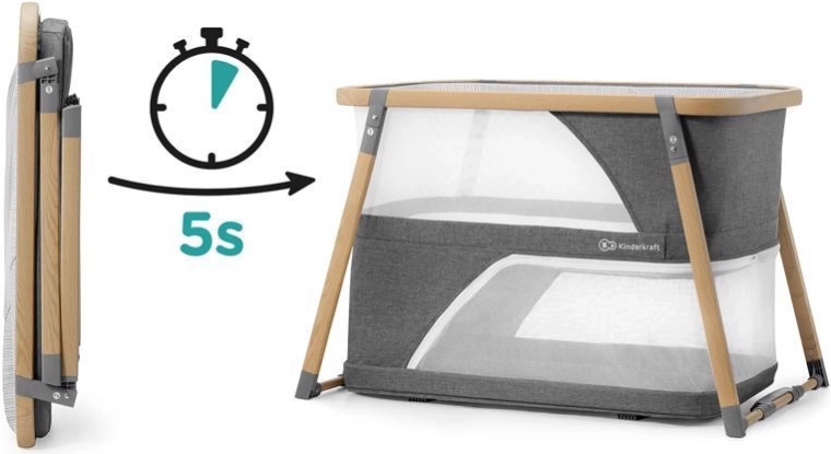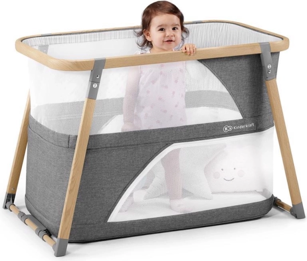 La culla multifunzionale 4 in 1 KIDERKRAFT Sofi in elegante colore grigio combina culla, lettino da viaggio, box e dondolo. Offre chiusura rapida in 5 secondi, telaio in alluminio leggero con finitura effetto legno, fianchi in rete traspirante e materasso in schiuma di alta qualità per un sonno e un gioco sicuri e confortevoli a casa e in viaggio.