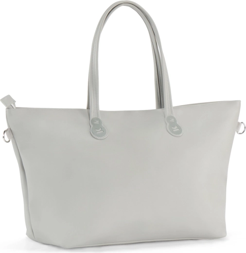 Grazie agli appositi agganci, la borsa si fissa facilmente al manico del passeggino, oppure si può portare a spalla con la tracolla lunga.