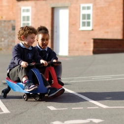 Didicar è un intelligente veicolo che si muove grazie alla semplice rotazione del solido manubrio – senza bisogno di batterie né di manutenzione complessa. Ruota il manubrio in avanti per andare avanti, ruotalo verso di te per andare indietro. Funziona al meglio su superfici dure e lisce sia in interni che all’esterno, idealmente su asfalto o cemento.
