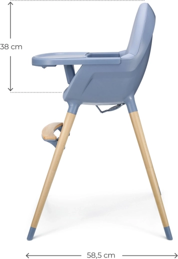 Le cinture a 5 punti, la barra centrale tra le gambe e le punte antiscivolo mantengono il seggiolone saldamente in posizione. Le gambe in faggio garantiscono stabilità e un look senza tempo.