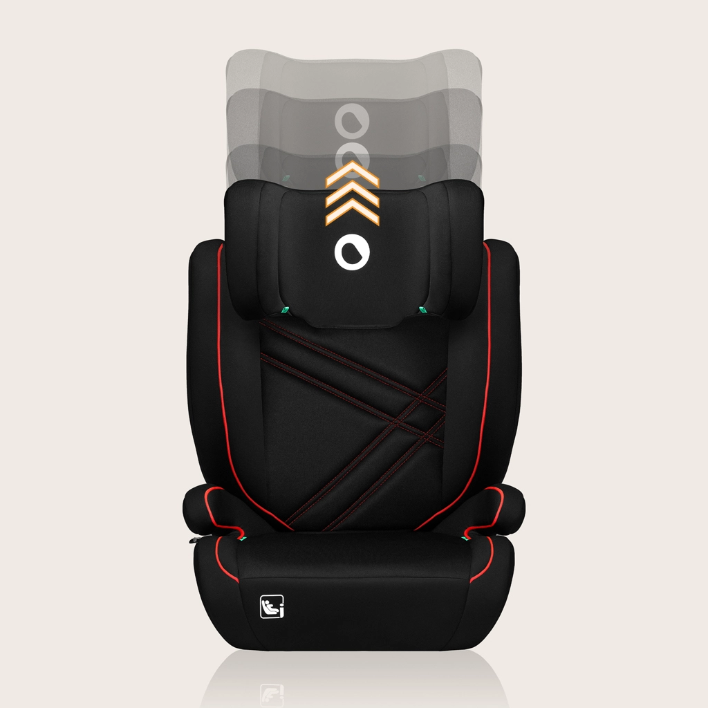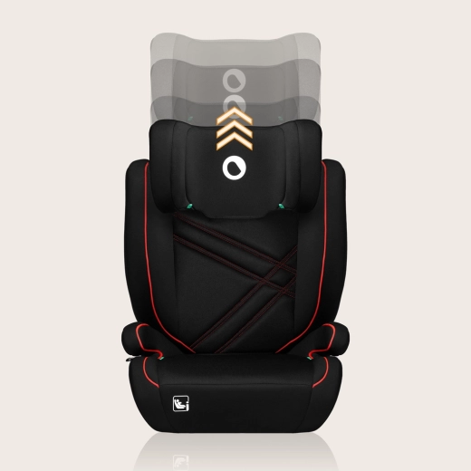 Per i viaggi lunghi è presente una morbida imbottitura con schiuma EPE nella seduta, nel poggiatesta e sui lati, oltre a rete traspirante nella parte di seduta per una migliore circolazione dell’aria. L’ampia seduta ergonomica offre comfort anche ai bambini più grandi e i braccioli favoriscono il corretto instradamento della cintura. La regolazione del poggiatesta in 8 posizioni si adatta rapidamente con una sola mano all’altezza attuale del bambino.