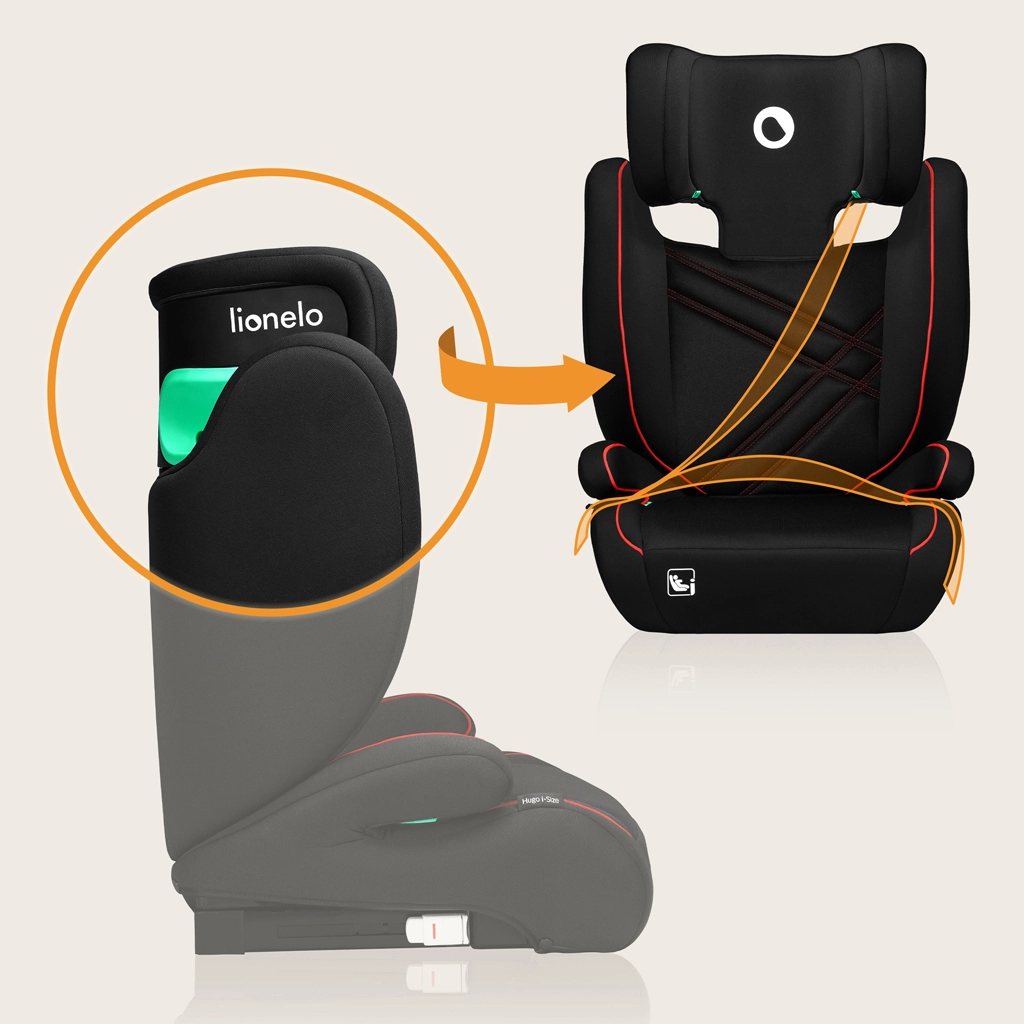 Il seggiolino auto Lionelo Hugo i-Size cresce con il bambino da 100 a 150 cm e offre protezione di alto livello secondo lo standard R129. Combina il fissaggio stabile ISOFIX con la possibilità di installazione con cintura a tre punti, risultando compatibile con la maggior parte delle auto. Il poggiatesta rinforzato con schiuma Memory Foam smorza le sollecitazioni e protegge testa e rachide cervicale, mentre le zone di protezione laterale aumentano la sicurezza negli impatti laterali.
