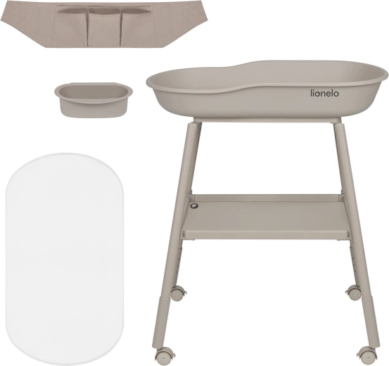 Il pratico fasciatoio Lionelo Rosie nella tonalità Beige Sand combina bordi rialzati di sicurezza, facile mobilità su 4 ruote con freni e ampi spazi di archiviazione. Include un materassino in schiuma con rivestimento impermeabile, altezza delle gambe regolabile per un’assistenza ergonomica, organizer in tessuto con 5 scomparti e una vaschetta laterale rimovibile per cosmetici o acqua. La solida struttura in acciaio garantisce sicurezza e comfort durante il cambio quotidiano.